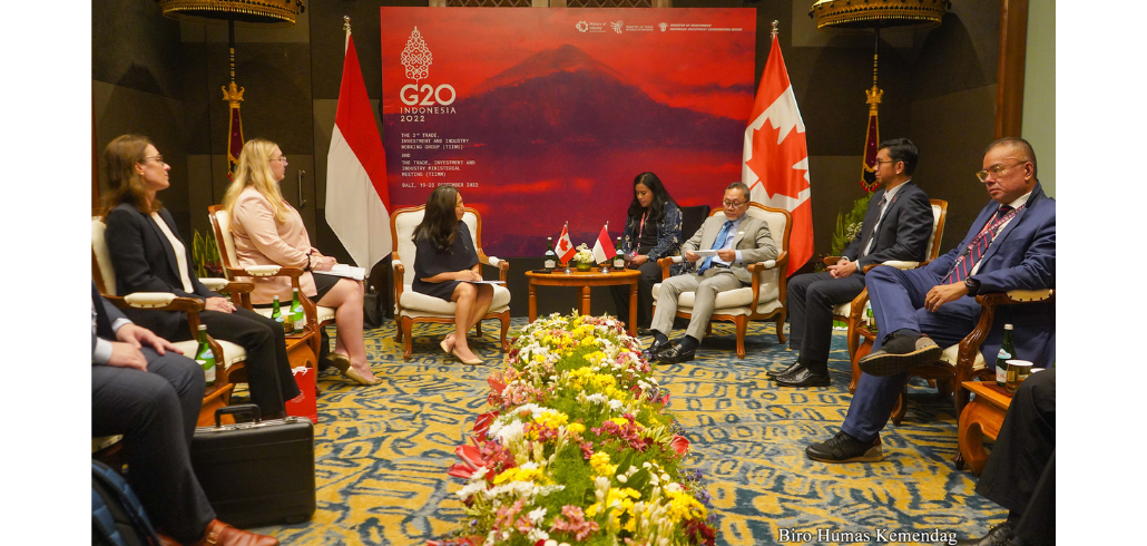 Badung, 23 September 2022 – Menteri Perdagangan Zulkifli Hasan melakukan pertemuan dengan Menteri Perdagangan, Usaha Kecil, Promosi Ekspor, dan Perdagangan Internasional Kanada Mary Ng di Nusa Dua, Badung, Bali, pada Jumat (23/9). Pertemuan dilakukan di sela rangkaian kegiatan G20 Trade, Investment, and Industry Ministerial Meeting (TIIMM) di Nusa Dua, Badung, Bali, pada 21—23 September 2022.