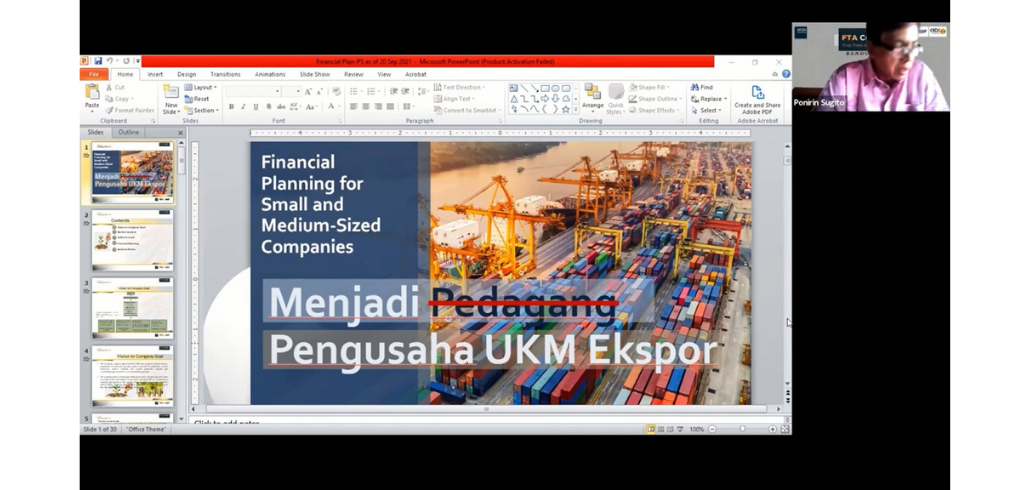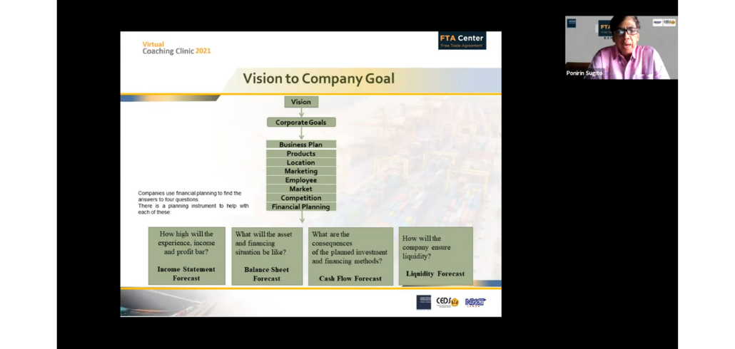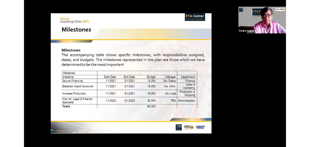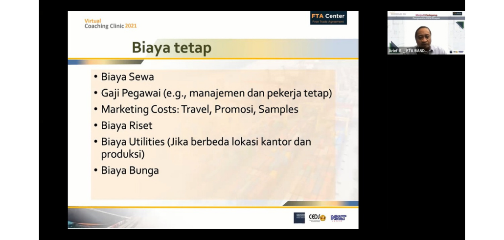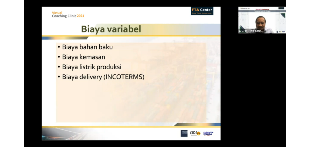 #kawaniaga pada hari Jumat, 1 Oktober 2021 FTA Center Bandung menyelenggarakan Virtual Coaching Clinic 2021: Business Plan – Financial Plan : Cost Structure & Managing Exchange Rate Risk, dengan narasumber Bapak Ponirin Sugito, Tenaga Ahli Bidang Implementasi Hasil Perjanjian Perdagangan Internasional, dan Bapak Arief Bustaman, Tenaga Ahli Bidang Akses Pembiayaan dan Prosedur Ekspor.