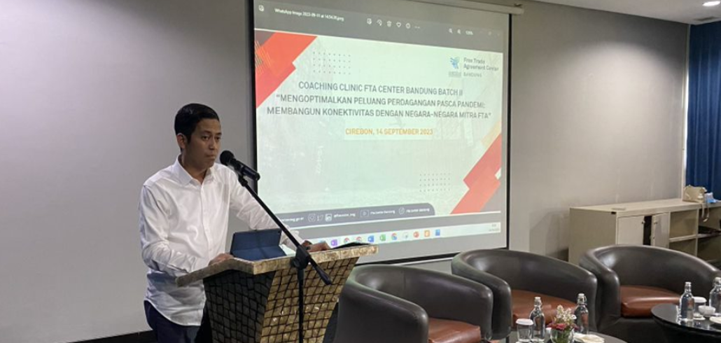 #kawaniaga FTA Center Bandung kembali mengadakan coaching clinic untuk wilayah kota cirebon dimana peserta yang dipilih dan diundang berasal dari wilayah kota Cirebon, Kabupaten Cirebon dan Kabupaten Kuningan. Kegiatan diselenggarakan meliputi beberapa agenda sosialisasi mencakup prosedur ekspor dan akses pembiayaan, strategi promosi dan marketing, serta implementasi hasil perjanjian perdagangan internasional.