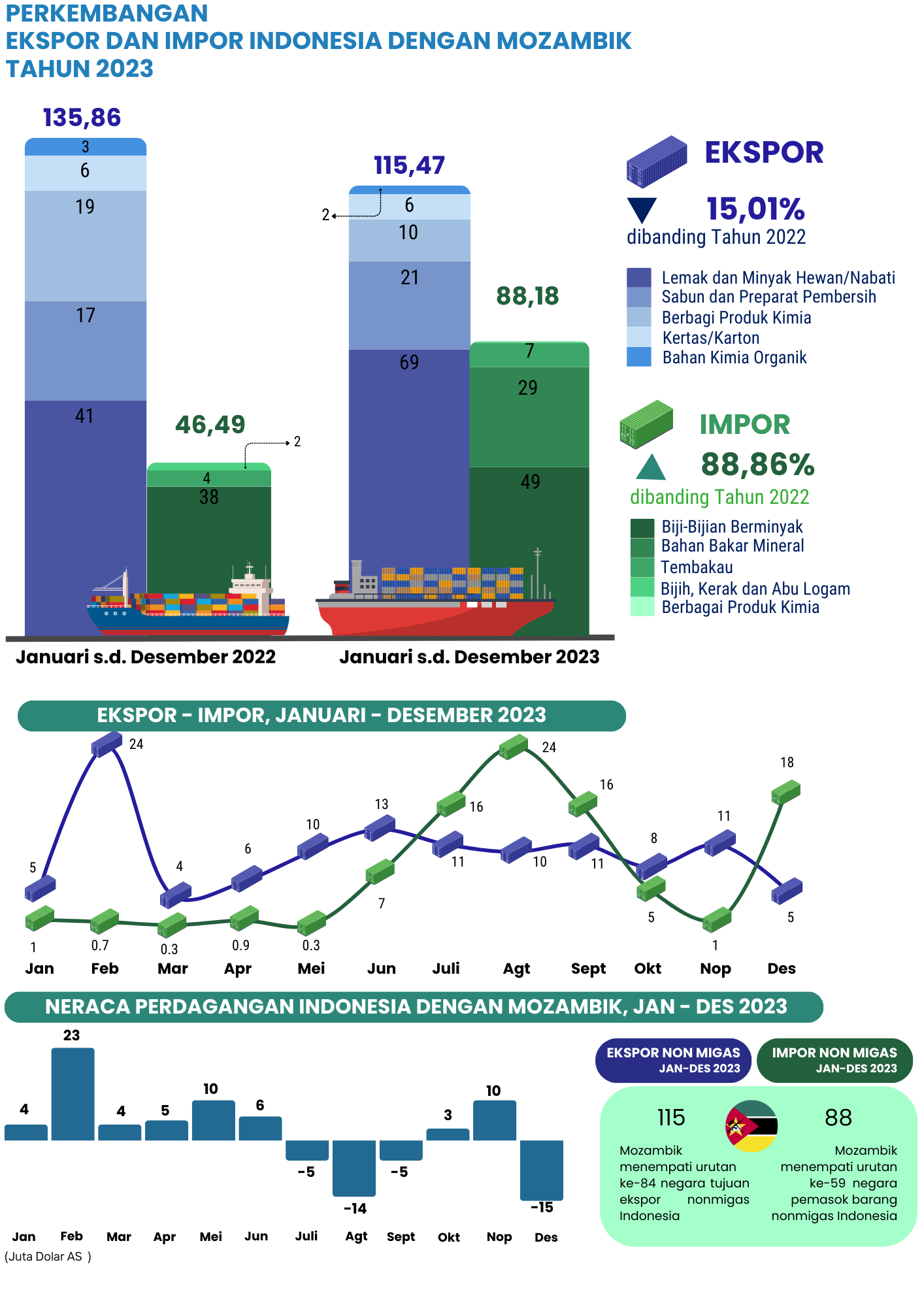 - Mozambik memiliki deep sea port dan Free Trade Zone sehingga diharapkan dapat menjadi hubkhususnya ke kawasan Afrika bagian selatan.