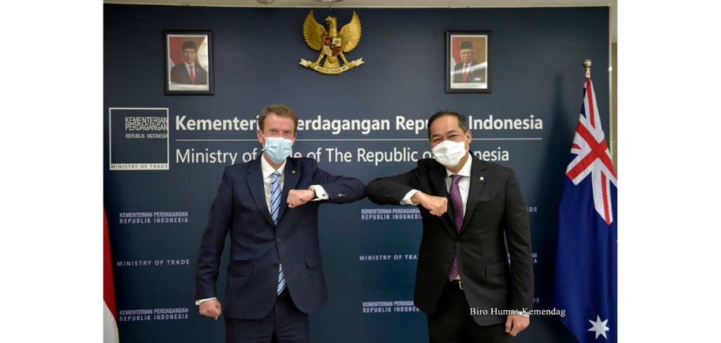 Jakarta, 29 September 2021 – Menteri Perdagangan RI Muhammad Lutfi menerima kunjungan Menteri Perdagangan, Pariwisata, dan Investasi Australia Daniel Thomas Tehan MP di Kantor Kementerian Perdagangan di Jakarta, pada hari ini, Rabu (29/9). Dalam pertemuan tersebut, Indonesia dan Australia bertekad meningkatkan nilai perdagangan dan investasi kedua negara dan memberikan kontribusi positif, baik regional maupun multilateral dalam pemulihan ekonomi dunia pasca-pandemi Covid-19.
