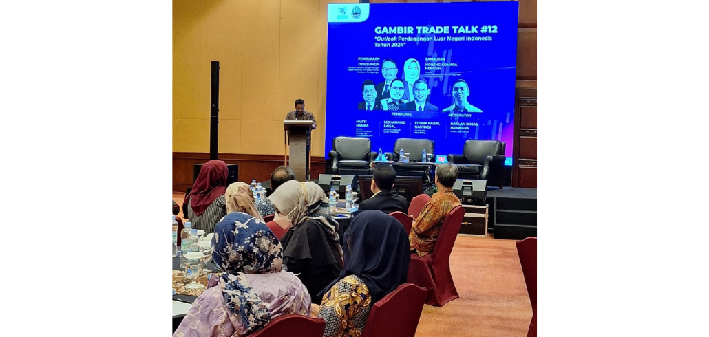 #kawaniaga Pada tanggal 23 November 2023, FTA Center Bandung berkesempatan untuk hadir dalam kegiatan Gambir Trade Talk #12 “Outlook Perdagangan Luar Negeri Indonesia” yang diselenggarakan oleh Badan Kebijakan Perdagangan Kementerian Perdagangan Republik Indonesia, yang bekerja sama daengan Dinas Perindustrian dan Perdagangan Provinsi Jawa Barat. Kegaitan ini dihadiri oleh lebih kurang 50 pelaku usaha. Kegiatan ini dihadiri oleh tiga narasumber, yakni Ketua Asosisasi Pengusaha Indonesia Bapak Mufti Hamka Hasan, Direktur Eksekutif CORE Indonesia Bapak Mohammad Faisal, serta Co-Founder Next Policy Bapak Fithra Faisal. Kegiatan ini dipandu oleh Bapak Harlan Dimas Isjawara selaku moderator.