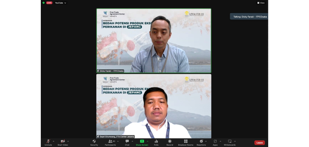 #kawaniaga pada tanggal 20 Maret 2023, FTA Center Jakarta melaksanakan webinar bedah potensi produk ekspor kedua dengan mengusung produk perikanan dengan negara tujuan ekspor ke Jepang. Bapak Sepri Situmeang selaku Tenaga Ahli FTA Center Jakarta Bidang Promosi dan Pemasaran bertindak sebagai moderator webinar.
