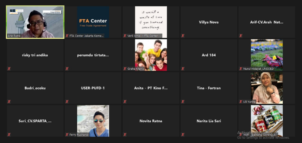 #kawaniaga pada Selasa, 6 Oktober 2020. FTA Center Jakarta mengadakan sosialisasi dan edukasi : “Optimalisasi Platform Media Sosial Profesional untuk Promosi dan Pemasaran Produk Ekspor” dengan narasumber Bapak Arie Putra, Tenaga Ahli Bidang Promosi dan Strategi Pemasaran, FTA Center Jakarta.