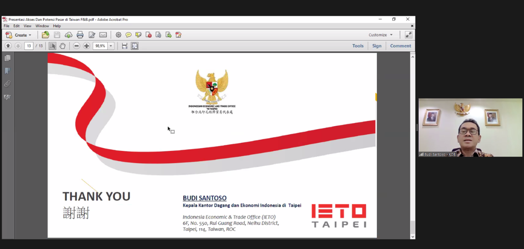 Webinar Peluang Pasar Komoditas Makanan dan Minuman Olahan di Pasar Taiwan