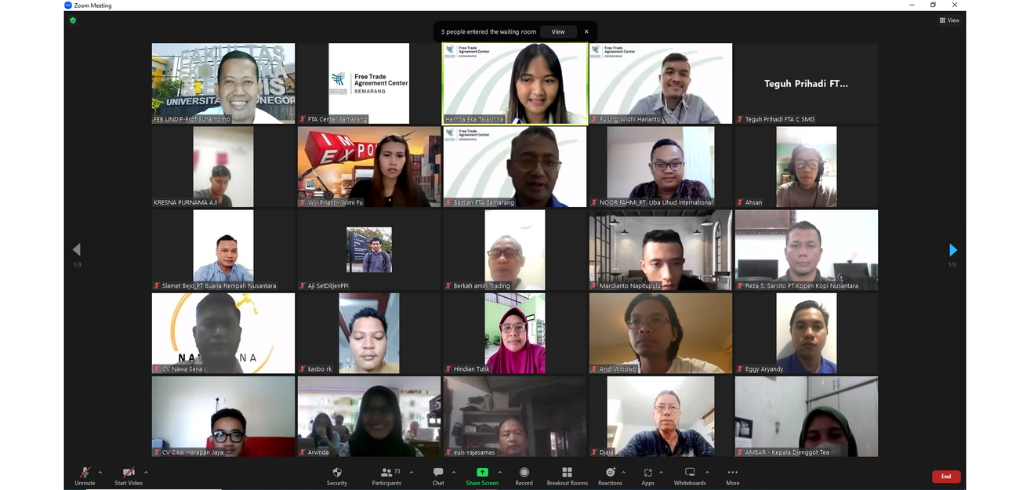 - Menambah wawasan pelaku usaha Jawa Tengah terkait perjanjian kerjasama Free Trade Agreement (FTA).